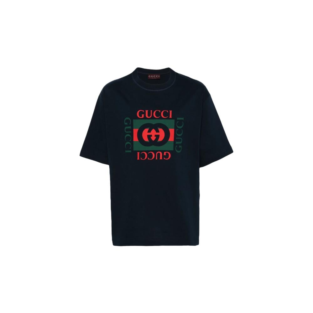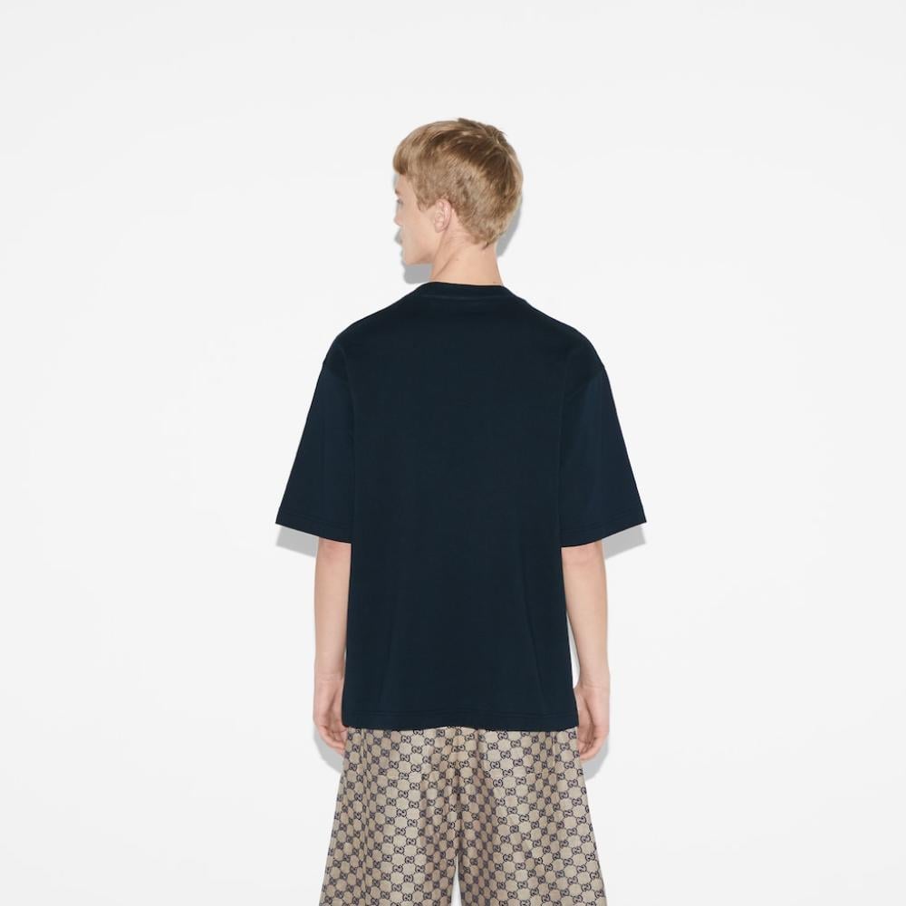 تيشيرت قوتشي اسود COTTON JERSEY T-SHIRT WITH GUCCI PRINT